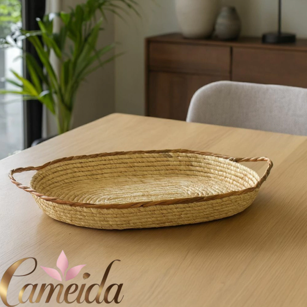 Cesto Decorativo de Fibra Natural com Alça Tamanho Grande - 52x29x5cm